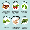 - Barna tengeri alga (Ascophyllum nodosum), petrezselyemlevél (Petroselinum crispum), sörélesztő, csipkebogyó (Rosa canina) por, csalánlevél (Urtica dioica), kakukkfű (Thymus vulgaris)