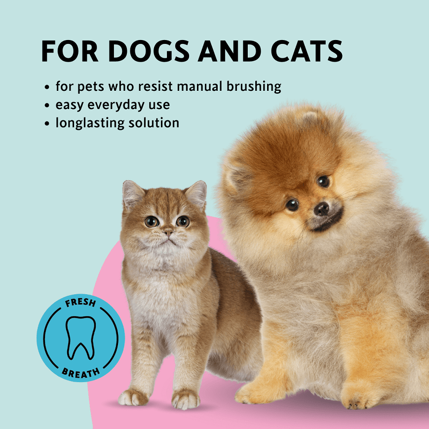 Kifejezetten kutyák és macskák számára készült, tökéletes választás azoknak a kedvenceknek, akik nem viselik el a fogkefét vagy a mentolos ízű fogkrémet.