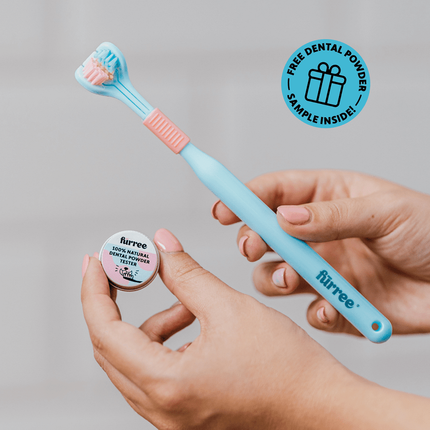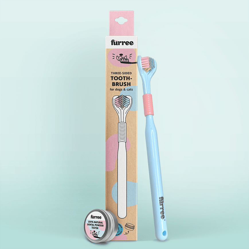 Háromoldalú fogkefe kutyáknak és macskáknak— ajándék fogmosó porral