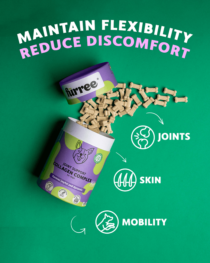 Szeretnéd, hogy kedvenced mindig energikus és boldog legyen, tele lendülettel? A Fürree Joint Support Collagen Complex finom, csont alakú falatkái kifejezetten úgy lettek megalkotva, hogy támogassák kutyád ízületeit, csontjait és teljes vitalitását. Ez a természetes, prémium kollagénes kiegészítő gondosan válogatott összetevőket tartalmaz, mint a Peptan® marha kollagén, glükózamin, kondroitin, hialuronsav és új-zélandi zöldkagyló.