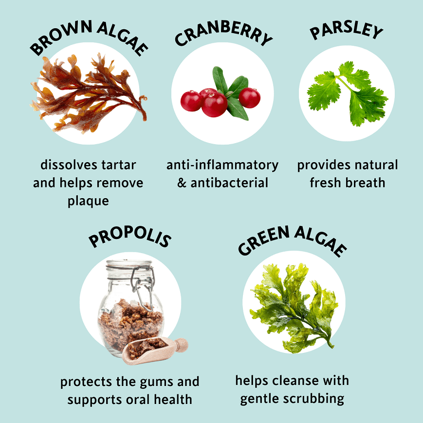 - barna alga – oldja a fogkövet és segíti a lepedék eltávolítását