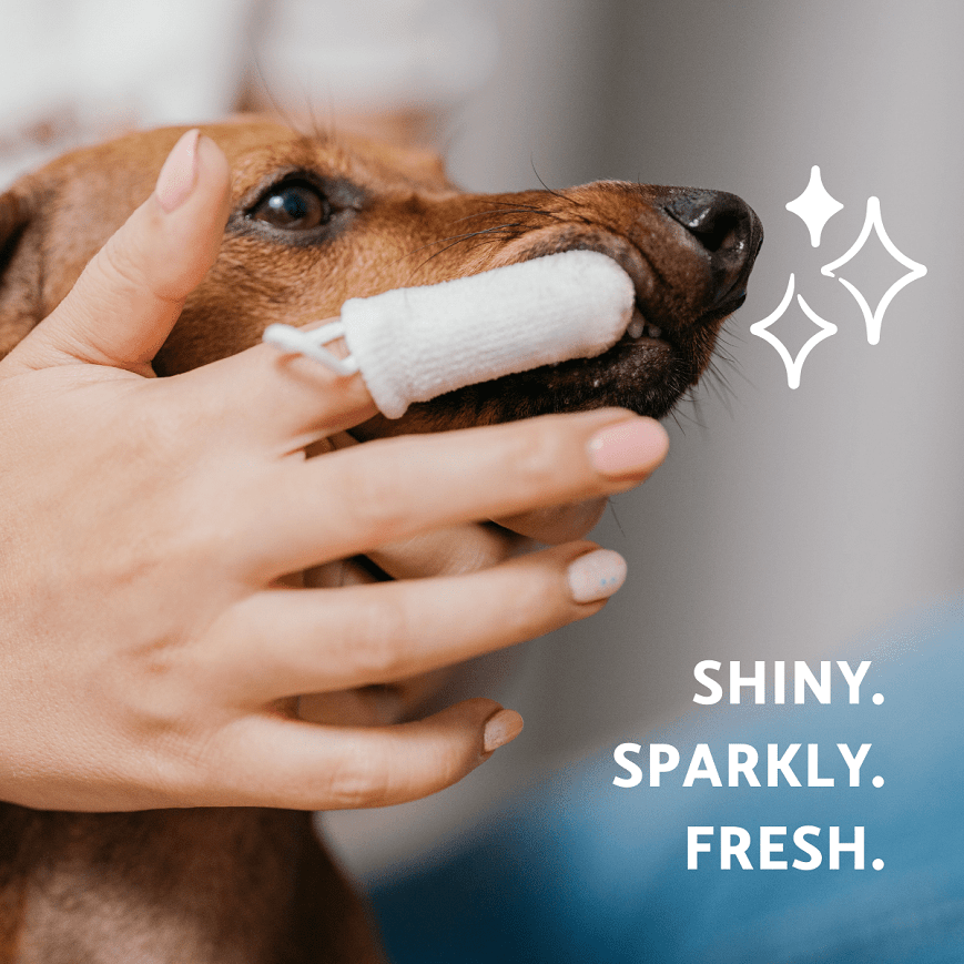 Ujjra húzható fogtisztító kendő kutyáknak és macskáknak— ajándék fogmosó porral